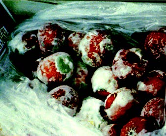 もも、いちごなどでは流通中の押し傷や擦り傷によって、市場へ出てから腐敗が多く発生する。フルーツキャップやプラスチックトレイが有効である。果物の大きさとキャップやトレイの穴の大きさとがうまく合っていないと、かえって、傷を生むことになってしまう。緩衝材は適正に使うことが重要である。