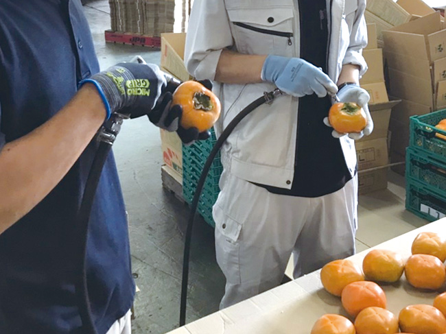日持ち性を向上させる脱渋技術として、低濃度ドライアイス個包装冷蔵脱渋法、貼り付け式樹上脱渋を紹介している。
